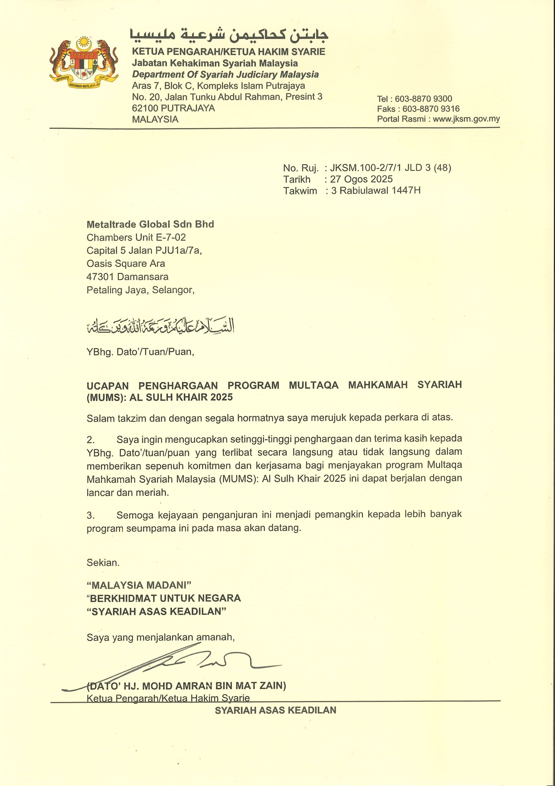 Penghargaan Program Multaqa Mahkamah Syariah (Mums): Al Sulh Khair 2025